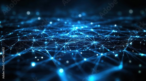 Abstract network of blue light connections, for technology, data visualization, and science concepts