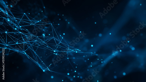 Abstract network of blue lines and dots on a dark background