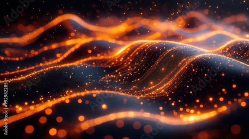 Abstract Orange and Black Background with Data Lines, Graphs, and Charts – 3D Digital Rendering, Data Visualization with Mountainous Vistas