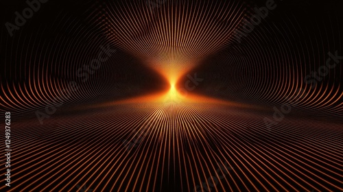 Abstract orange lines converge, bright center, dark background; futuristic design