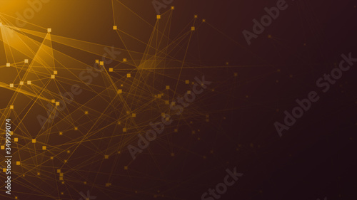 Abstract orange polygon tech network with connect technology background. Abstract dots and lines texture background. 3d rendering.