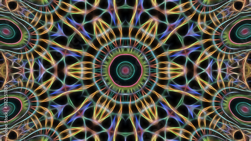 Abstract orange-green kaleidoscope background.