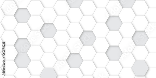 Abstract pattern with hexagonal white and gray technology line paper background. Hexagonal 3d vector grid tile and mosaic structure simple style hexagonal graphic concept. Futuristic surface design.