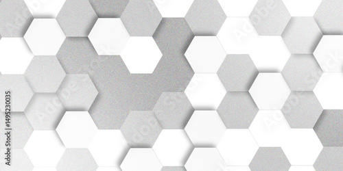 Abstract pattern with hexagonal white and gray technology line paper background. Hexagonal 3d vector grid tile and mosaic structure simple style hexagonal graphic concept. Futuristic surface design.