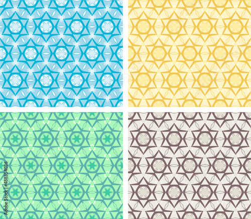 Abstract pattern with stars. Set of different colors. Seamless vector pattern