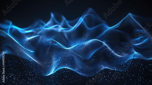 Abstract picture of neon light particle with digital technology style design connecting become dynamic of electric wave movement represent about flowing of data or structure of network system. AIG53.