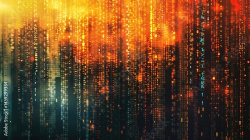 Abstract picture orange particle with digital technology style design with the coding data flow show dynamic movement represent about programming by programmer or problem solve by encryption. AIG53.