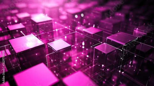 Abstract Pink 3D Cubes with Glowing Lines