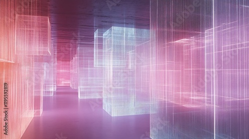 Abstract Pink and White Neon Wireframe Cityscape