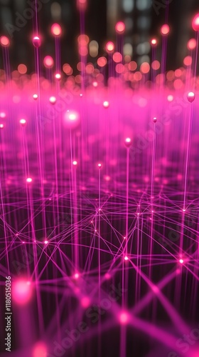 Abstract pink glowing network connections.