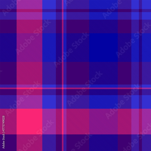 Abstract plaid pattern featuring bold blue and pink hues. Versatile for backgrounds, textiles, or creative projects. A visually appealing and modern texture.
