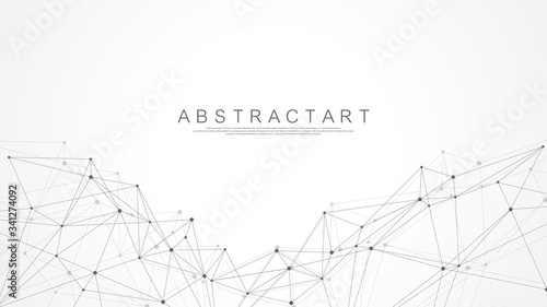 Abstract plexus background with connected lines and dots. Plexus geometric effect. Digital data visualization. Futuristic technology style low-poly element for design. Vector illustration.