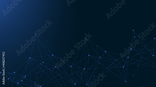 Abstract plexus background with connected lines and dots. Plexus geometric effect. Digital data visualization. Futuristic technology style low-poly element for design. Vector illustration.
