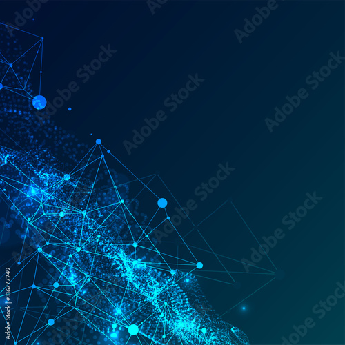 Abstract plexus vector background. Glowing particles dynamic flow.