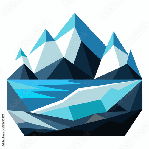 abstract polygonal glacier landscape in a cool win