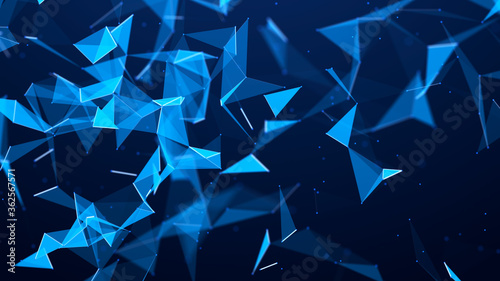 Abstract polygonal space with dots and lines. Connection science background. Triangular business wallpaper. 3d rendering