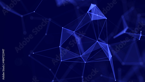 Abstract polygonal space with dots and lines. Connection science background. Triangular business wallpaper. 3d rendering
