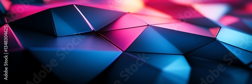 Abstract Polygonal Surface with Blue and Pink Light Creates Modern Design