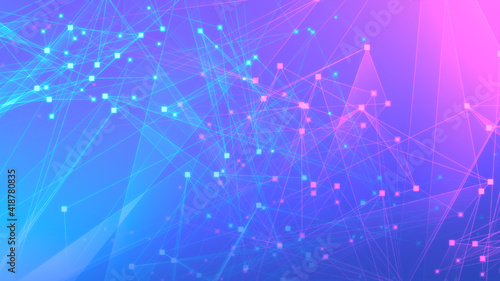 Abstract purple blue polygon tech network with connect technology background. Abstract dots and lines texture background. 3d rendering.