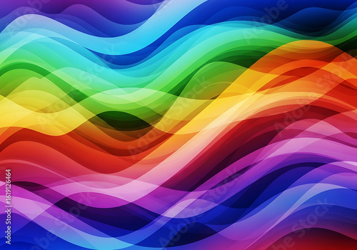 Abstract rainbow wavy lines create a vibrant, colorful background design.