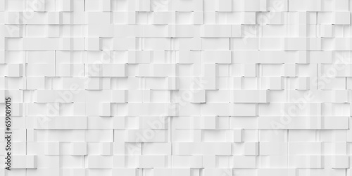 Abstract random white cube boxes block background wallpaper banner frame filling geometry pattern