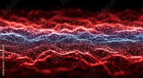 Abstract Red and Blue Particle Waves - Vibrant abstract background featuring red and blue particle waves, ideal for technology, data, or energy concepts