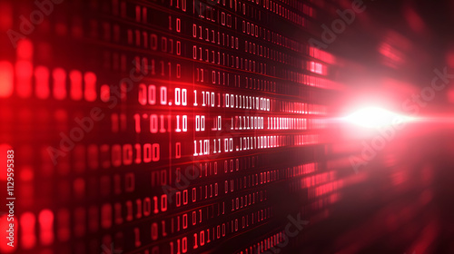 Abstract red binary code streaming data background.