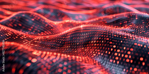 Abstract Red Digital Wave with Binary Code Futuristic Data Visualization Concept