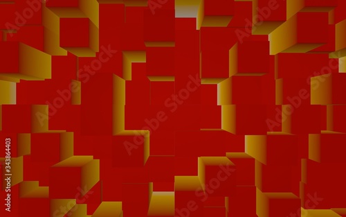 Abstract red elegant cube geometric background. Chaotically advanced rectangular bars. 3D Rendering, 3D illustration