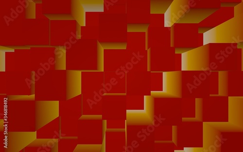 Abstract red elegant cube geometric background. Chaotically advanced rectangular bars. 3D Rendering, 3D illustration
