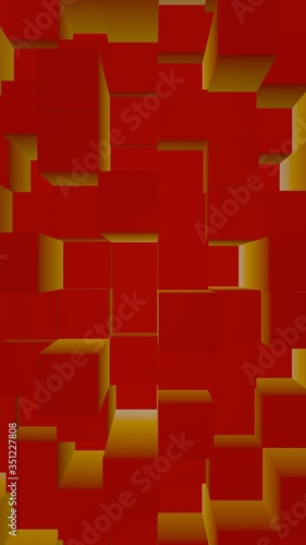 Abstract red elegant cube geometric background. Chaotically advanced rectangular bars. 3D Rendering, 3D illustration