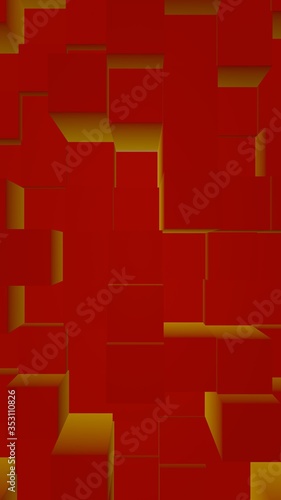 Abstract red elegant cube geometric background. Chaotically advanced rectangular bars. 3D Rendering, 3D illustration