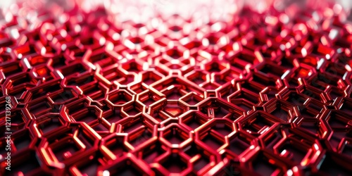 Abstract Red Hexagonal Network Structure Interlocking Geometric Design