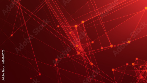 Abstract red polygon tech network with connect technology background. Abstract dots and lines texture background. 3d rendering.