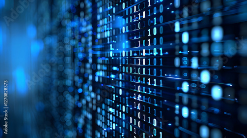 Abstract representation of binary code cascading down a digital background in a tech environment