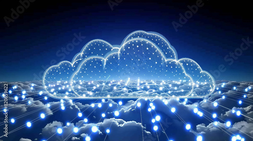 Abstract representation of digital cloud technology with bright lights and data connections, symbolizing modern internet and storage solutions.