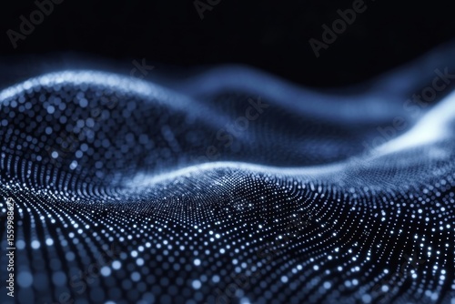 Abstract representation of light dots creating a wave pattern in a dark space, Abstract depiction of illuminated dots arranged in a wave pattern within a dark space, suggesting fluidity and rhythm