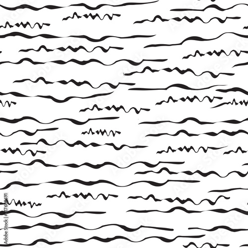Abstract seamless pattern with hand drawn brush lines on white background. Simple abstract pattern background for interrior, textile design, paper craft. Hand drawn minimalist lined seamless