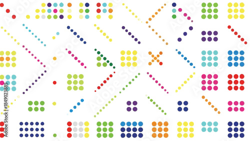 Abstract Seamless Vector Pattern with Colorful Dots and Geometric Shapes on White Background