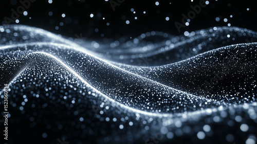 Abstract shimmering surface with white dots and bokeh effect on a dark background texture design