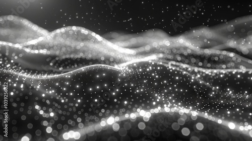 Abstract silver particles in a black background with bokeh effect. AI generative. .