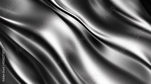 Abstract Smooth Silver Fabric Texture Background Image Showing Elegant Draped Waves and Shiny Metallic Surface