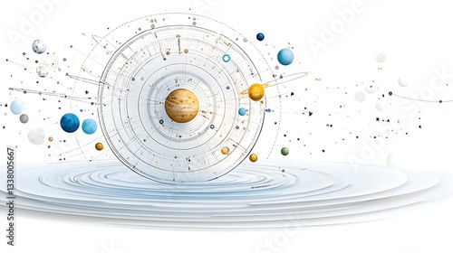 Abstract Solar System Illustration Planets Orbits and Celestial Bodies in Space