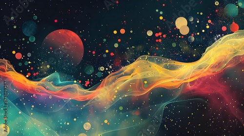 Abstract space scene with minimal elements and deep colors