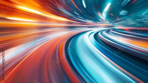 Abstract speeding lights trails background rushing through time and space