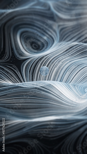 Abstract sphere amidst swirling particles and dynamic lines