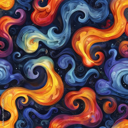 Abstract Swirling Colors on Dark Background