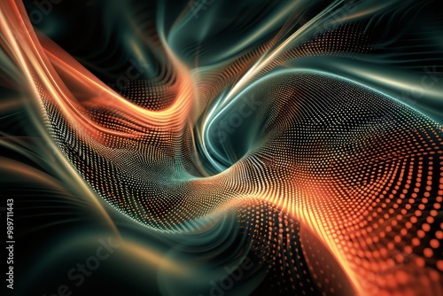 Abstract Swirling Pattern of Orange and Green with Dotted Texture