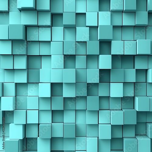 Abstract Teal Cube Wall Texture A Seamless Pattern of Irregularly Stacked Cubes with Subtle Gradient Variations