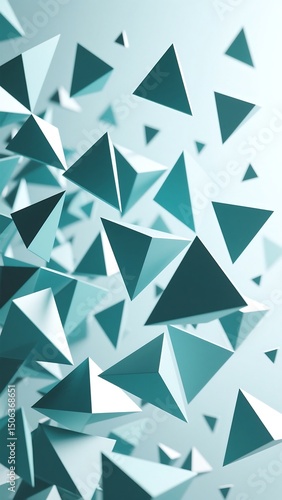 Abstract Teal Geometric Shapes Floating Pyramids and Triangles Background
